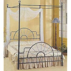 Full size wrought iron sunburst design. This item includes headboard, footboard, and canopy only. Size 78.25L x 54w x 83.5h. Mattress, frame and linens not included.